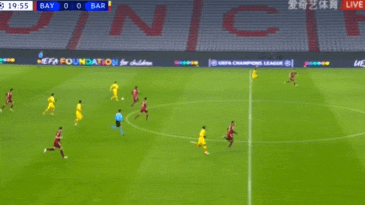 第18分钟,朗格莱冒顶,拜仁获得前场2打0机会,但被回追的皮克奋力化解。随后裁判鸣哨示意越位在先。