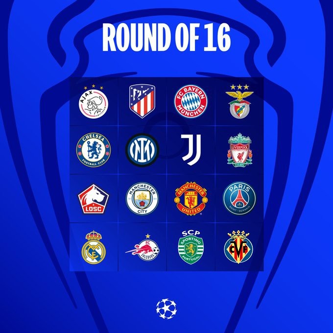 五大联赛共12队晋级16强。英超四强全部晋级淘汰赛,西甲次之,占了3个席位。意甲方面,尤文、国米占2席。法甲的巴黎携手里尔晋级16强,拜仁慕尼黑则成德甲独苗。