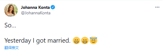 “所以……昨天,我结婚了。”近日,前世界排名第四的英国名宿孔塔在社交媒体上宣布,她已于当地时间周六和未婚夫步入了婚姻殿堂。