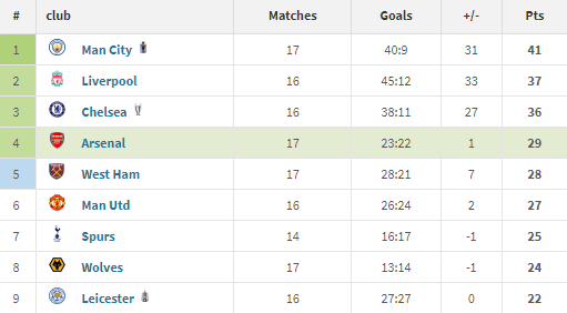 目前阿森纳17轮后取得9胜2平6负,重返积分榜第4,但由于疫情问题,曼联、热刺、莱斯特城等强敌均有少赛的情况,枪手不能掉以轻心。
