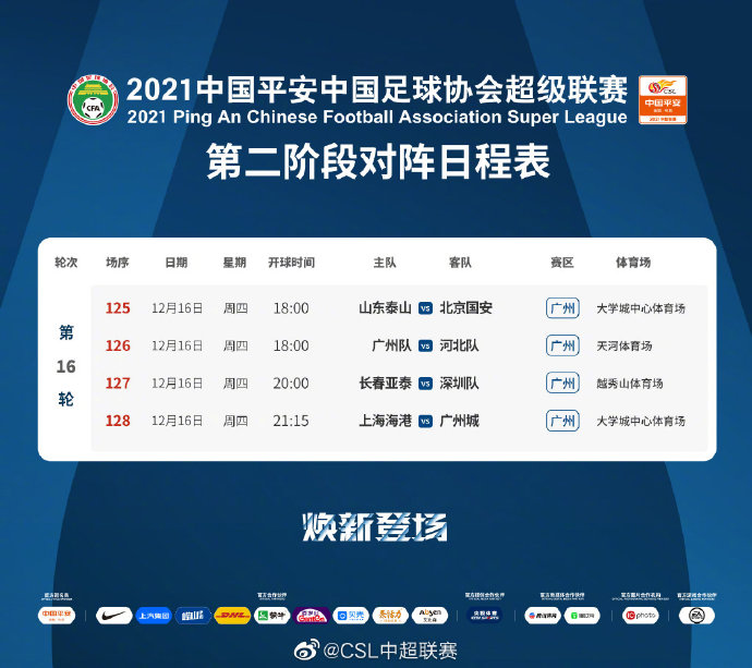 根据当前疫情发展动态,为保障赛事顺利完成,经广州赛区组委会研究决定,现调整2021中国平安中超联赛(第二阶段)第16轮广州赛区部分比赛如下: