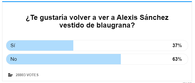 近日西媒《每日体育报》消息称,现效力于国际米兰的攻击手桑切斯有望再次加盟巴萨。该报随即展开投票调查,有63%的球迷并不希望智利人重返诺坎普。