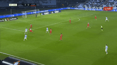 下半场第47分钟,塞尔塔再次打出配合,阿斯帕斯右路接到分球,内切后小角度射门,皮球击中远端立柱弹射入网,塞尔塔2-0西班牙人: