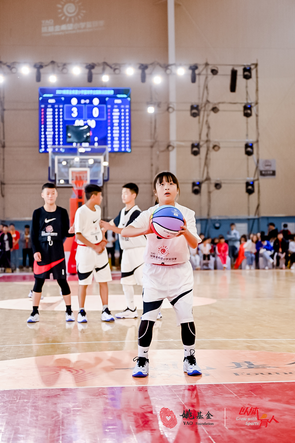 公益表演赛由2021姚基金希望小学篮球季全国集训及联赛中脱颖而出的小球员代表与CBA球员、教练员代表及特邀嘉宾共同组成。