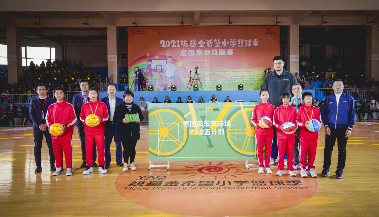 将在2022年共同打造乡村学校公益球场改建长期战略项目:美团·姚基金 “美团单车变球场——YAO篮计划”。今年12月,姚基金与美团援建了篮球季项目校云南省昆明市嵩明县杨桥街道龙街完全小学的篮球场地,这是该项目的首块落成球场。