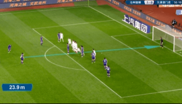 第49分钟,天津获得位置不错的任意球机会,维基诺维奇直接打门被人墙挡出。