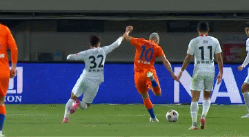 第11分钟,费莱尼中路断球后给到中路,弧顶位置徐新迎球怒射放了高射炮。