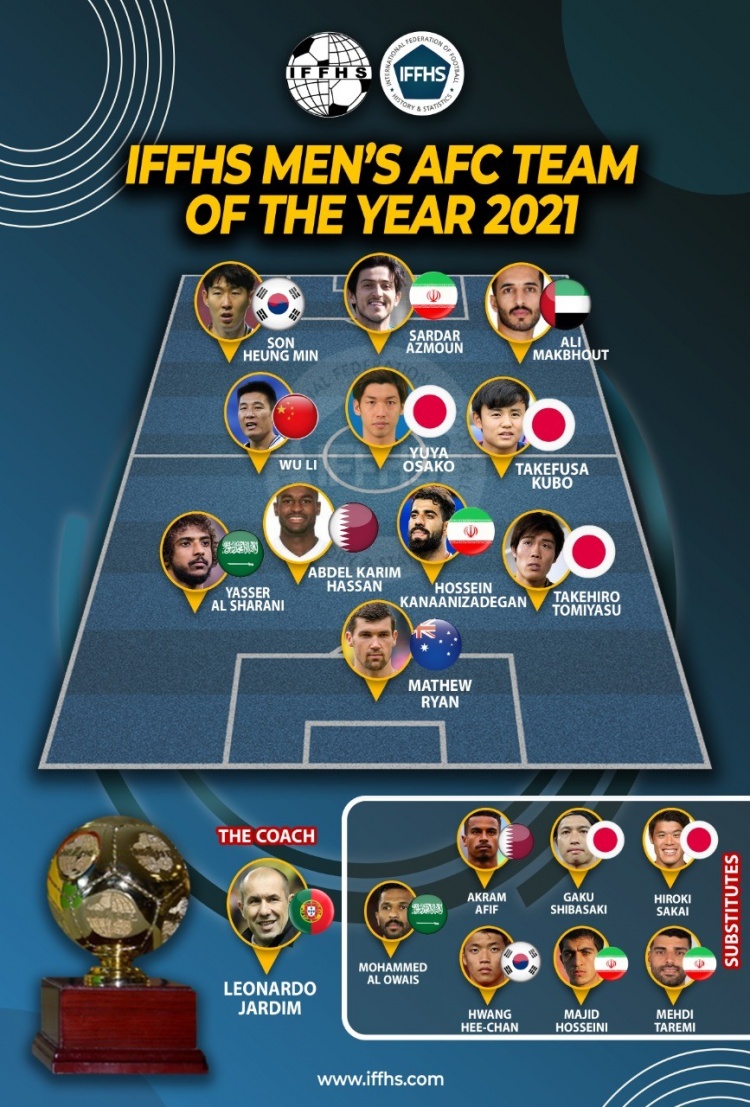 IFFHS(国际足球历史和统计联合会)评选2021亚洲最佳阵容如下:
