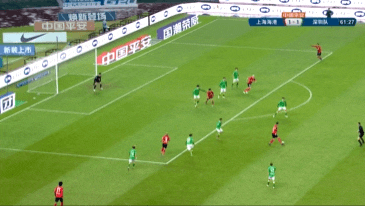 第77分钟,深圳获得角球机会,郜林的头球攻门颇具威胁。
