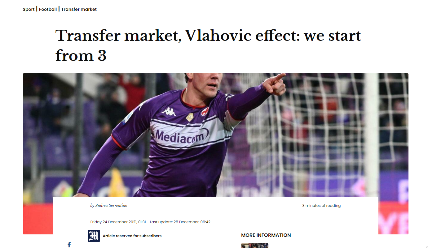 北京时间12月27日,据意大利媒体《信使报》透露枪手阿森纳击败了尤文图斯的竞争,在弗拉霍维奇的争夺战占得先机。