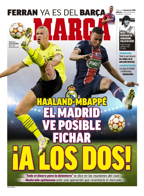 《马卡报》今日封面标题为:“哈兰德+姆巴佩,皇马已看到签约曙光——我全都要!”