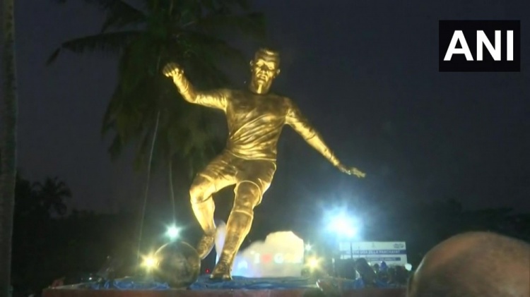 12月28日,一座C罗的雕像在印度果阿邦正式揭幕,耗资120万卢比,用三年建成,雕像重约410公斤。