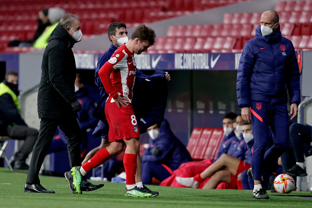 12月中旬,格列兹曼在马竞与皇马的马德里德比中受伤提前被替换下场,随后经检查确认右大腿肌肉受伤,此后一直处于恢复当中。今天的国王杯比赛是格列兹曼的复出首战,法国前锋在下半场第56分钟被替换上场,并且在第66分钟打入一球。然而第77分钟,格列兹曼无法坚持比赛,在球队没有换人名额的情况下提前离场。