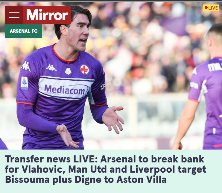 《镜报》报道称阿森纳在1月份希望能够将弗拉霍维奇签下,就算这样的签约会让球队“倾家荡产”。阿尔特塔公开表示过他们希望在转会窗搞出一点大动作。对于枪手而言锋线的补强是必然的,拉卡泽特的合同在夏天就将到期,奥巴梅扬也遭到了球队的启用。在这样的前提下阿森纳亟需引进新的前锋来为球队注入活力,而紫百合锋霸就是目前枪手的不二人选。
