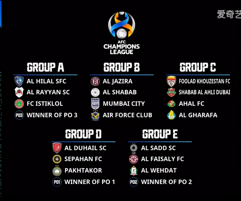 A小组:利雅得新月(沙特),赖扬(卡塔尔),伊提洛尔(塔吉克斯坦),沙迦(阿联酋)/祖拉(伊拉克)