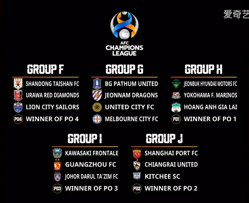 J小组:上海海港、清莱联、杰志、资格赛2胜者(神户胜利船(日本)vs悉尼FC(澳大利亚)/掸邦联(缅甸))