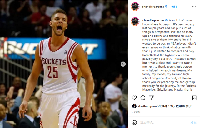 随后帕森斯个人也更新了社交媒体Instagram,总结了自己的篮球生涯并深情告别。