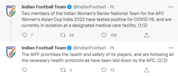 印度女子国家队2名参加2022年印度女足亚洲杯的球员在新冠病毒检测中结果呈阳性,目前正在指定的医疗机构进行隔离。