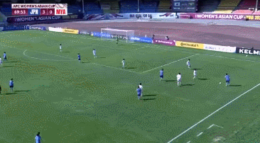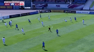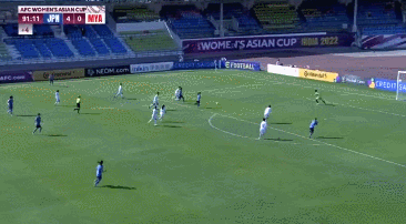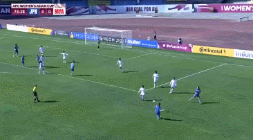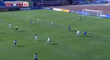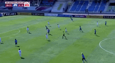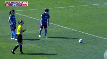 53' 犹本光主罚定位球圆月弯刀,皮球击中横梁下沿钻入球门,日本女足3-0领先缅甸女足。