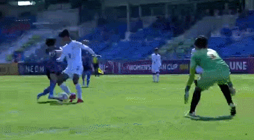 90+2' 长谷川唯面对出击的门将将球搓起,皮球越过门将后钻入球门,日本女足5-0领先。