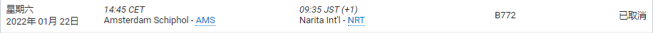 据查,当天从阿姆斯特丹飞往日本成田机场的航班只有一班,航班号为KLM861,航空公司是荷兰皇家航空,而这班航班已被取消,基本可以确认为洛国富等人将要搭乘的航班。按照原本计划,这架航班应于北京时间22日晚21:45分从史基浦机场起飞,于23日上午8:45抵达日本成田机场,中国男足“大部队”预计将于北京时间23日下午抵达,这样一来,洛国富等人在成田机场落地后还有时间稍作休整,而后与到来的“大部队”会合。