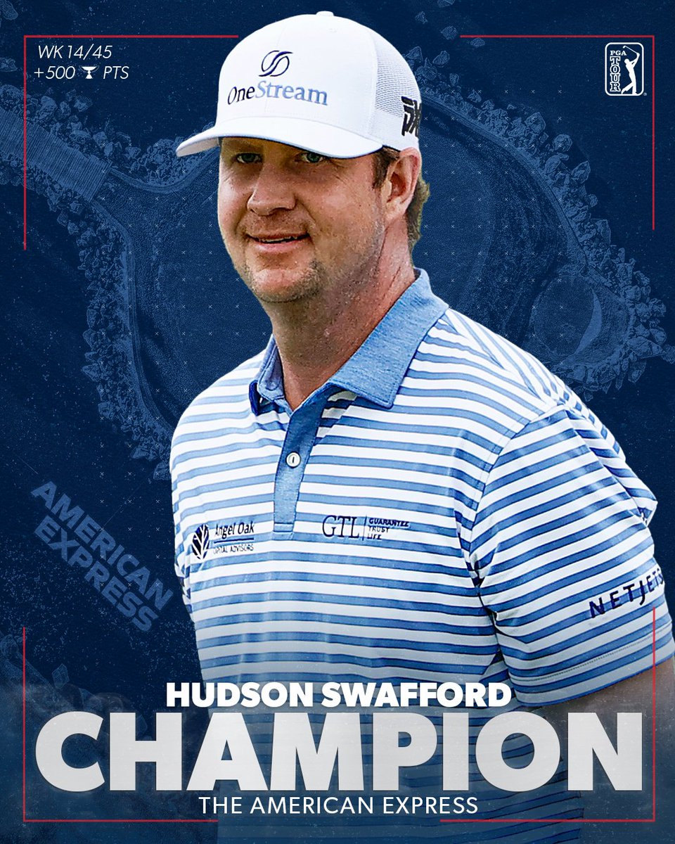 北京时间1月24日,美国运通锦标赛在拉金塔乡村俱乐部结束了四轮比赛争夺,美国34岁选手哈德逊-斯沃福德(Hudson Swofford)在PGA西体育馆球场最后三个洞抓一鹰一鸟,两杆优势逆转赢得本场比赛。