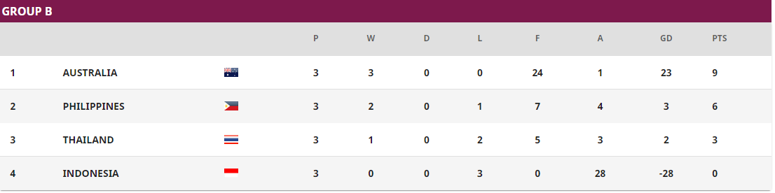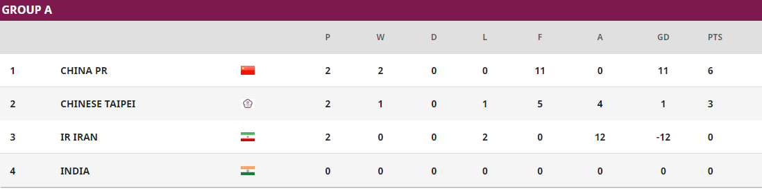 最终三个小组的积分排名形势也得到了确定。A组中中国女足排名第一、中国台北排名第二、伊朗排名第三;B组中澳大利亚排名第一、菲律宾排名第二、泰国排名第三、印尼排名第四;C组中日本排名第一、韩国排名第二、越南排名第三、缅甸排名第四。