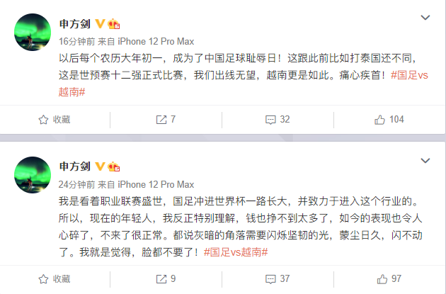 著名解说员申方剑:以后农历大年初一成了中国足球耻辱日。