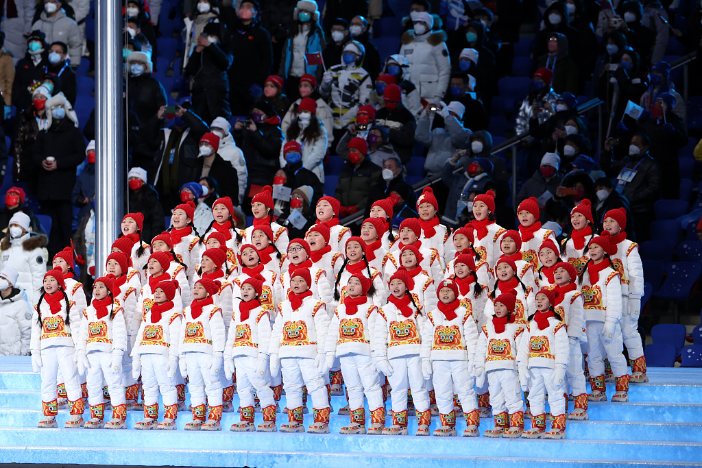 44名天真无邪的孩子以纯净、空灵的天籁之音,用希腊语完美演绎了奥运会会歌《奥林匹克圣歌》。这些孩子全部来自太行山革命老区河北保定阜平县城南庄镇的五所乡村小学,是真正的“大山里的孩子”。