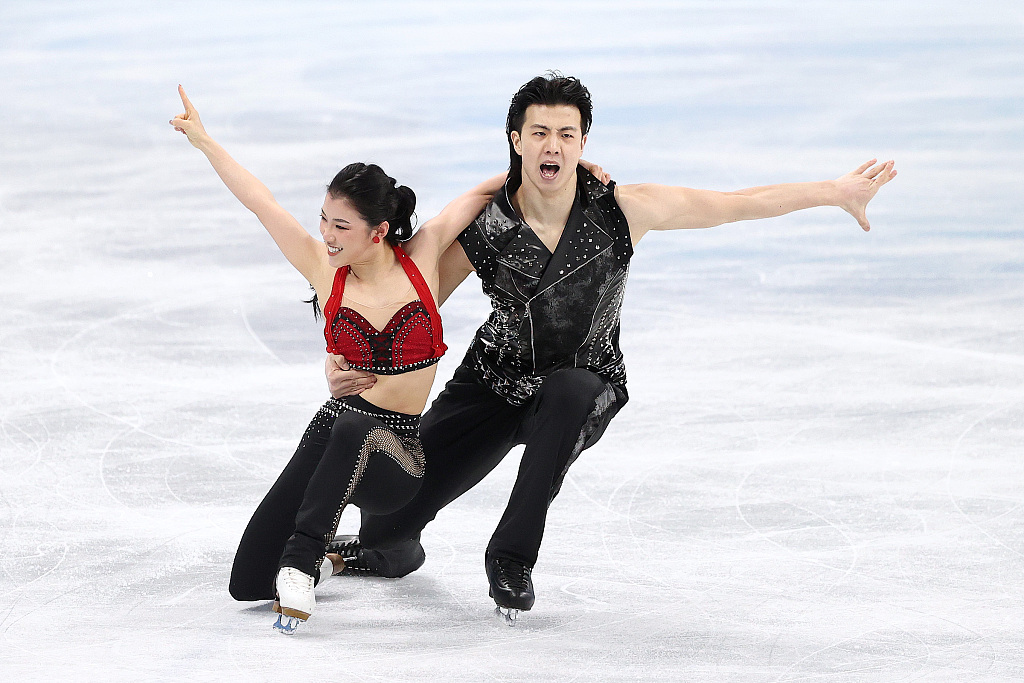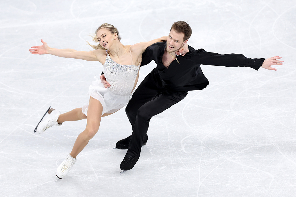 中国组合王诗玥/柳鑫宇第二位登场,二人在《功夫钢琴》音乐中翩翩起舞,顺利完成全套动作。同步捻转步、编排步伐、托举滑行,都给人留下了深刻印象。最终技术动作57.41分,节目内容分49.77分,总分107.18分。