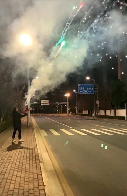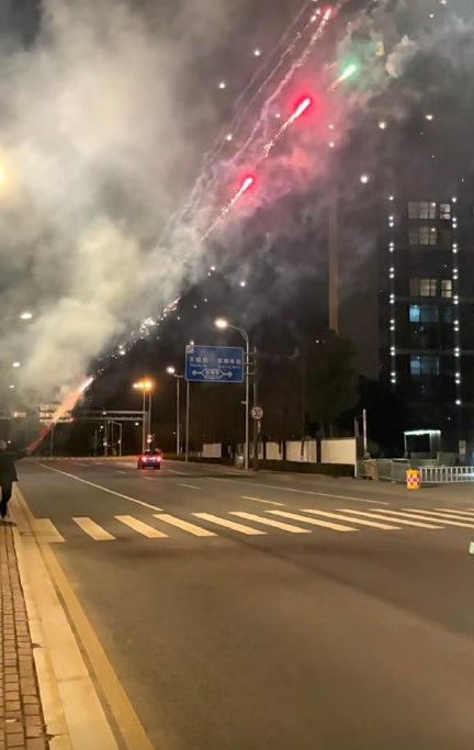 夺笋呐!女足夺冠后球迷在男足酒店外放烟花庆祝
