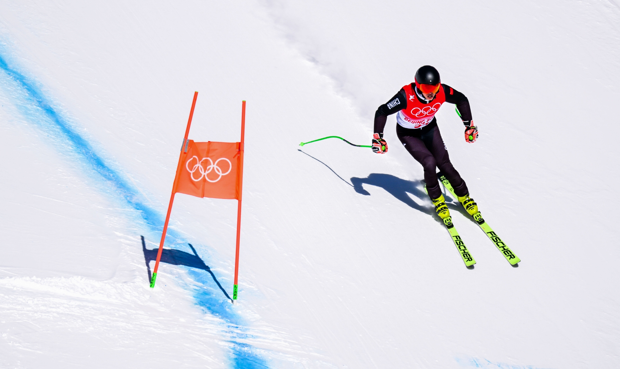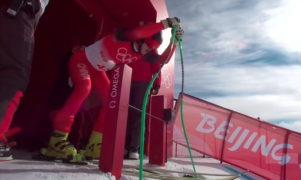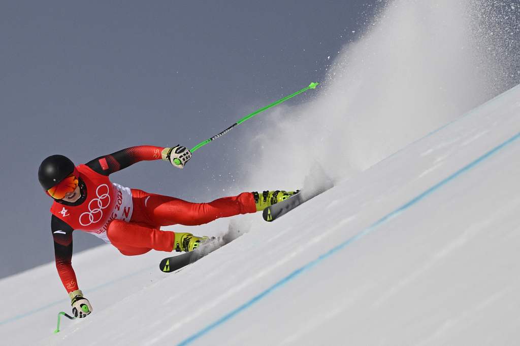 中国另一位选手徐铭甫42位选手登场顺利完赛,我国在高山滑雪项目首次完赛。