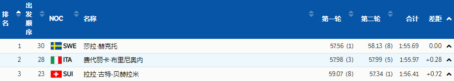 根据竞赛规则,在首轮滑行完赛的选手将在今日下午开启第二轮的角逐,两轮成绩相加决定最终排名。