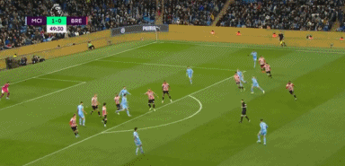 第68分钟,曼城扩大比分!戴维-拉亚后场出球失误,斯特林单刀射门被扑出,德布劳内跟进补射空门得手!曼城2-0布伦特福德!