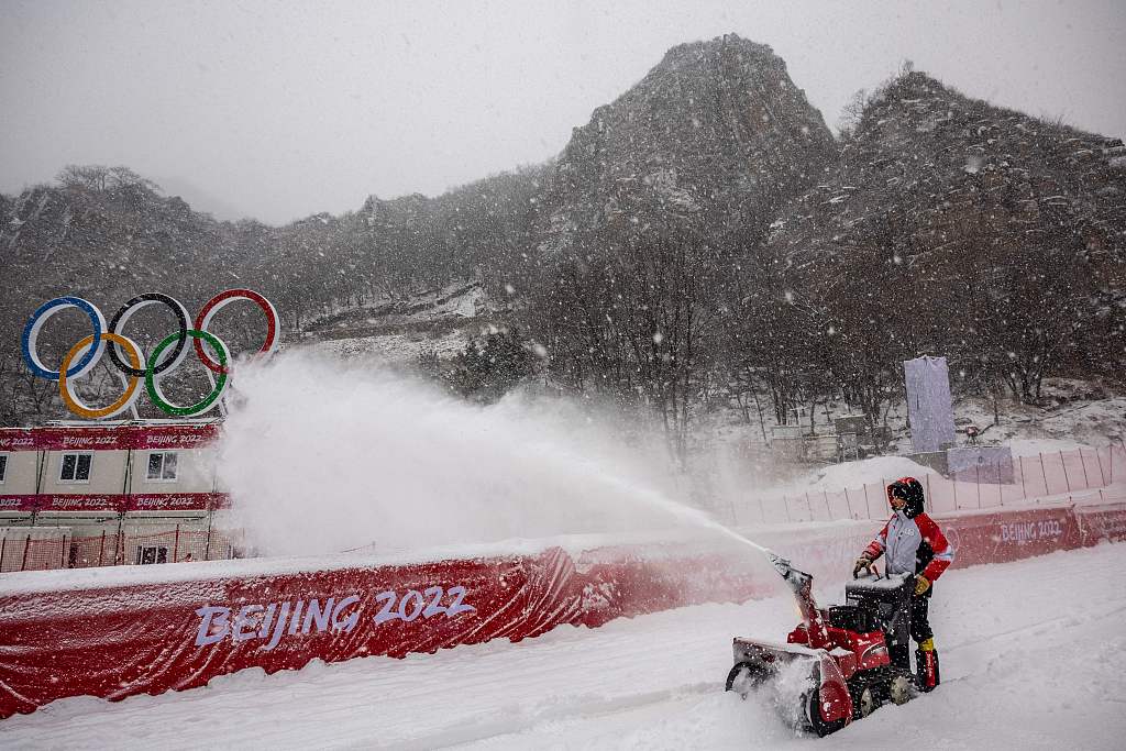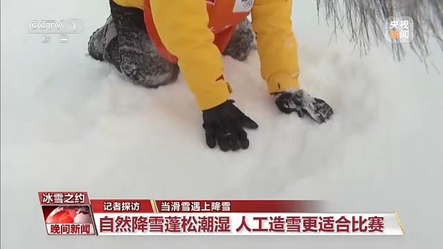 中央电视台记者许梦哲了解到,其实自然降雪对比赛,特别是雪上项目的影响还是挺大的。这是刚下的雪,非常蓬松,而且它湿度比较大。而我们的人工造雪,非常硬,而且我们的压雪机压过很多次,这才是符合我们运动员比赛的条件。所以工作人员正在清浮雪,能保证我们的赛事正常进行,降低运动员受伤的概率。