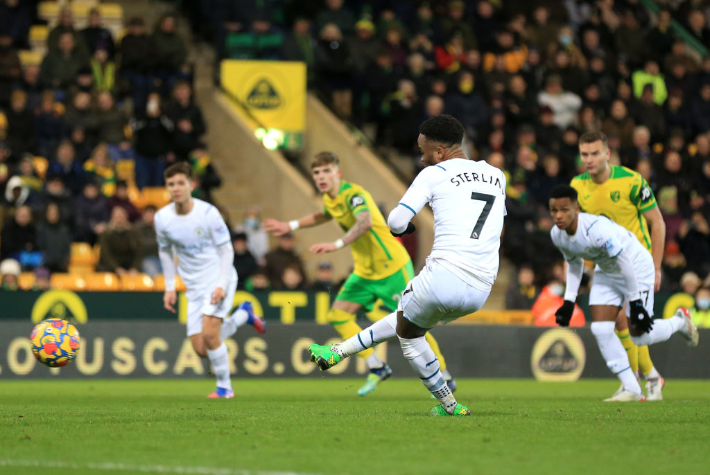 曼城客场4-0轻取诺维奇,斯特林成为了比赛的绝对主角。上半场他轰出一记无解世界波,帮助球队打破僵局;下半场他又打进了一粒精彩的头球,而在尾声阶段他曾经罚失点球,但随后他迅速跟进补射得手,他也就此收获了个人职业生涯的第7个帽子戏法。