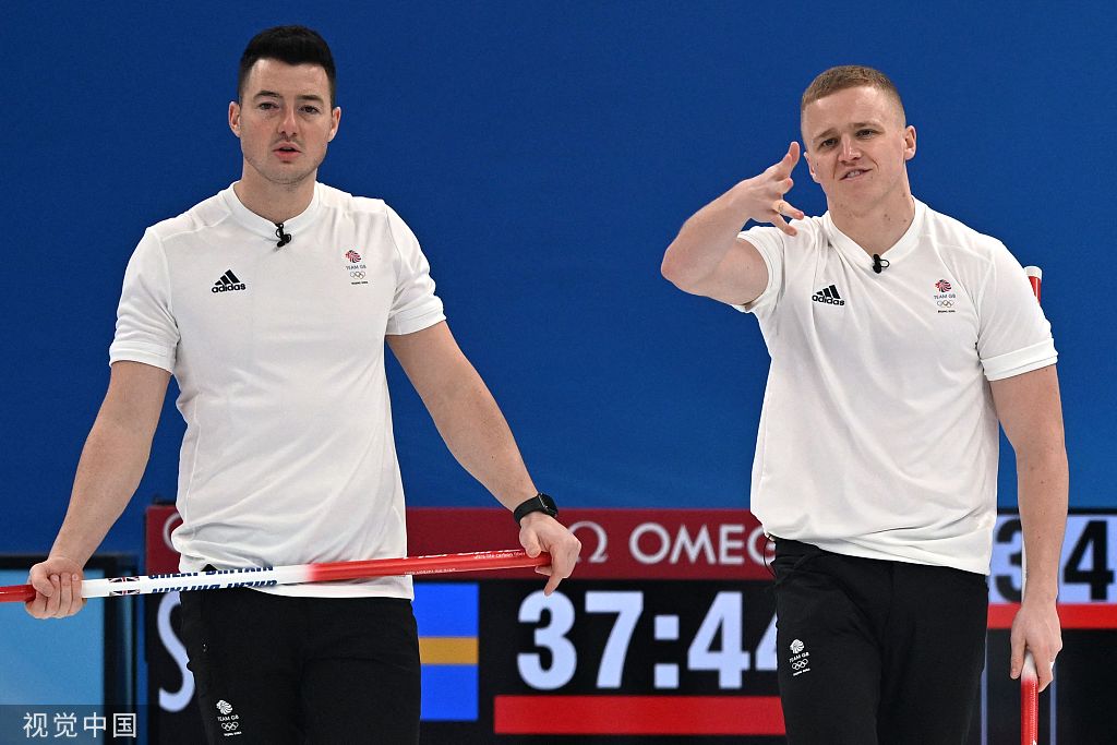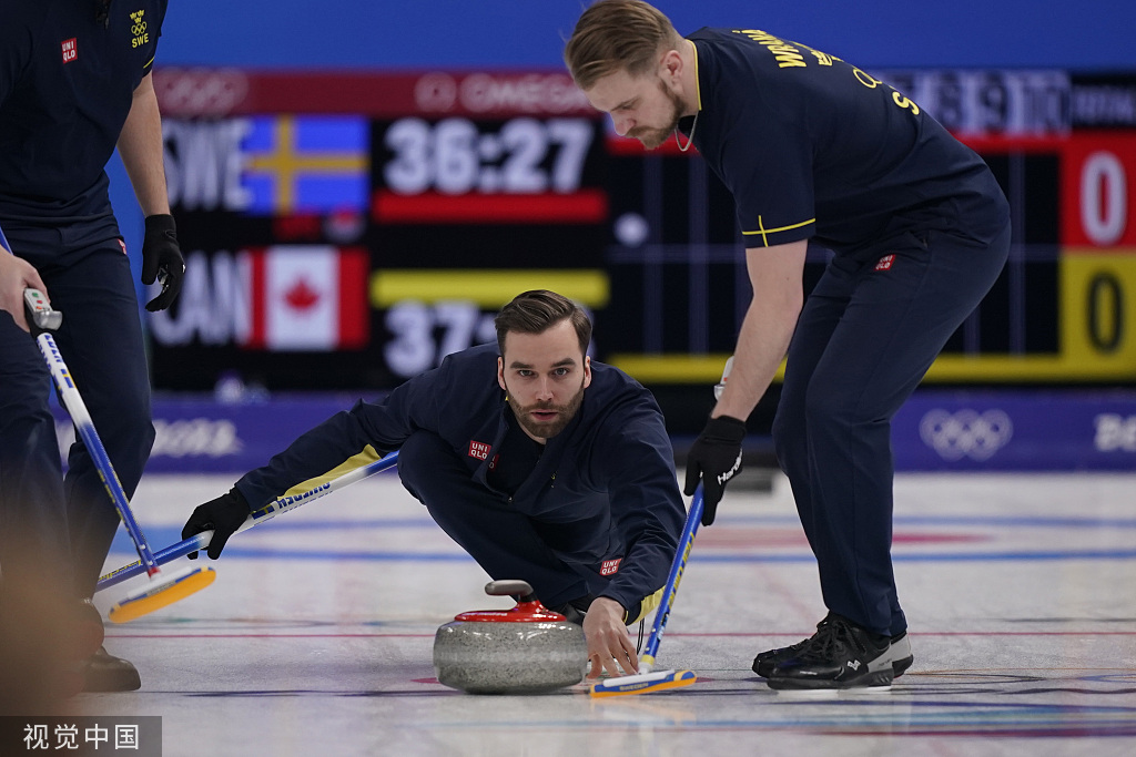 男子冰壶决赛!瑞典队5-4险胜英国队夺金