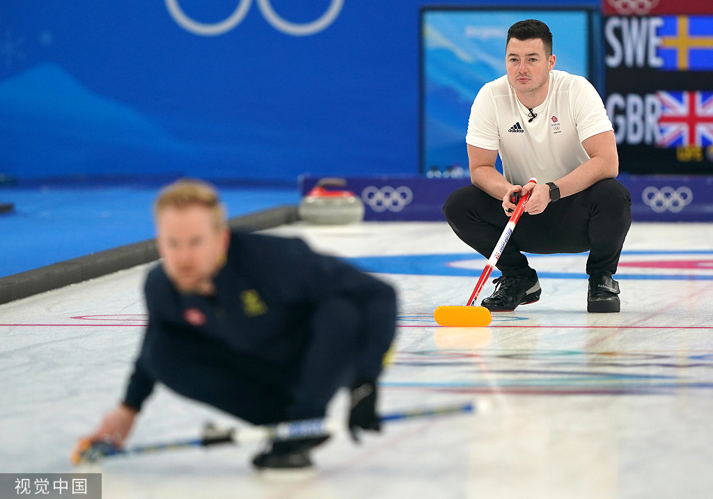 北京时间2月19日,冰壶男子决赛 瑞典VS英国的比赛在国家游泳中心举行。
