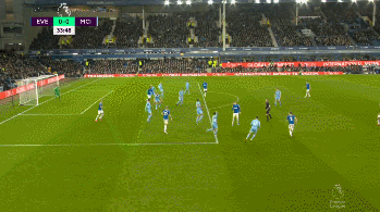 第81分钟,曼城终于打破僵局!伯纳多-席尔瓦低平球横传被霍尔盖特阻挡后发生变线,迈克尔-基恩防守失误反应不及,菲尔-福登斜刺里杀出得球推射命中!埃弗顿0-1曼城!