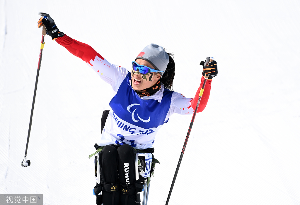 在残奥高山滑雪项目中,张梦秋以1:13.54的成绩,夺得女子超级大回转站姿组比赛的冠军,为中国代表团夺得第三枚金牌,之后的男子超级大回转站姿组比赛中,梁景怡以1:09.11的成绩收获一枚金牌。此外,在女子超级大回转视障组和坐姿组的比赛中,朱大庆和张雯静分别以1:19.30和1:24.31斩获铜牌。