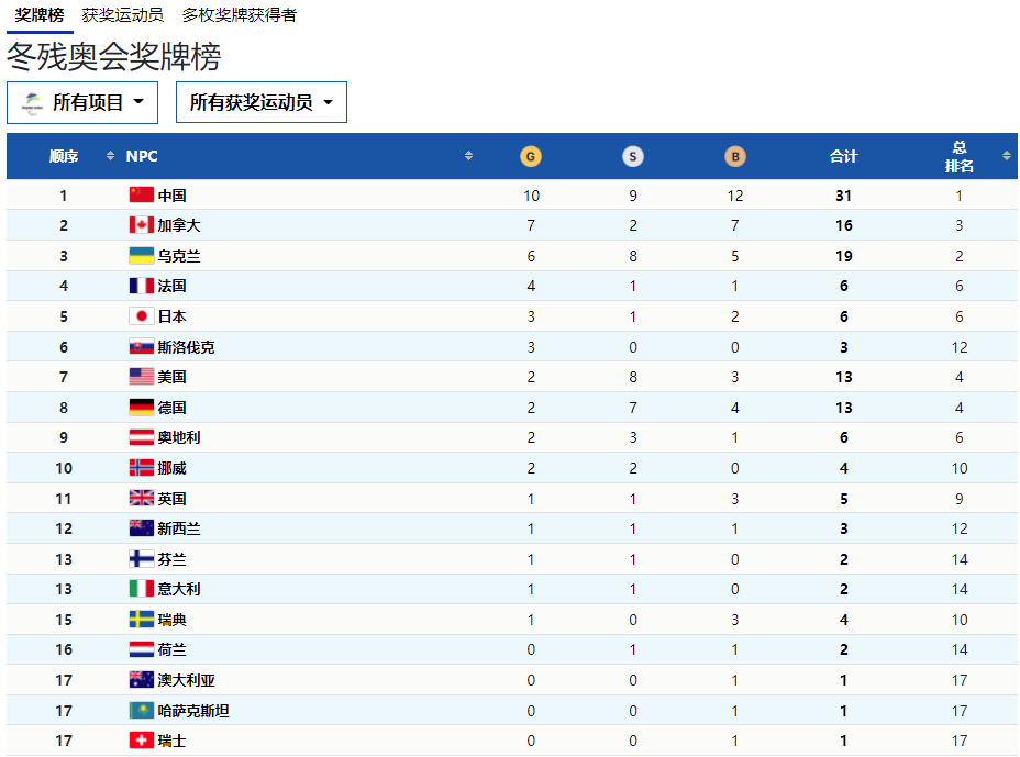 北京时间3月9日,北京冬残奥会进入到了第五个比赛日的争夺!在今天残奥冬季两项将决出男子短距离-坐姿、女子短距离-坐姿在内的六枚金牌!最终中国队再添2金1银1铜!总奖牌数10金9银12铜,合计31枚奖牌继续稳居金牌榜和奖牌榜榜首!