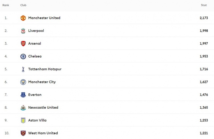 里程碑!利物浦英超总进球数达2000粒 历史排名第二
