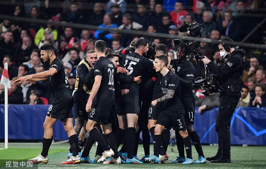 北京时间3月16日凌晨,欧冠八分之一决赛次回合展开角逐,阿贾克斯坐镇主场迎战本菲卡。上半场阿莱打进一球,但是被判罚越位在先。下半场,努涅斯打进全场唯一进球,最终本菲卡客场1-0击败阿贾克斯,以两回合总比分3-2淘汰对手,晋级八强。