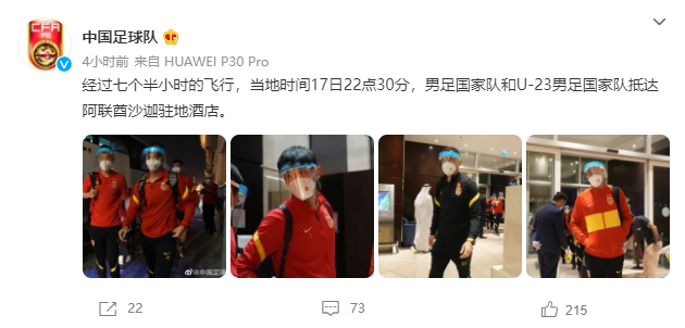 据国家队官方微博称,在经过了7个半小时的飞行后,男足国家队和男足U23国家队于当地时间3月17日22:30抵达了阿联酋沙迦的驻地酒店。此前有报道称,由于受到航班延误的影响,球队所乘坐的航班比原计划晚了将近5个小时才抵达目的地。接下来,国足将会参加世预赛12强赛的最后2轮比赛,而U23国家队则将参加迪拜杯的赛事。