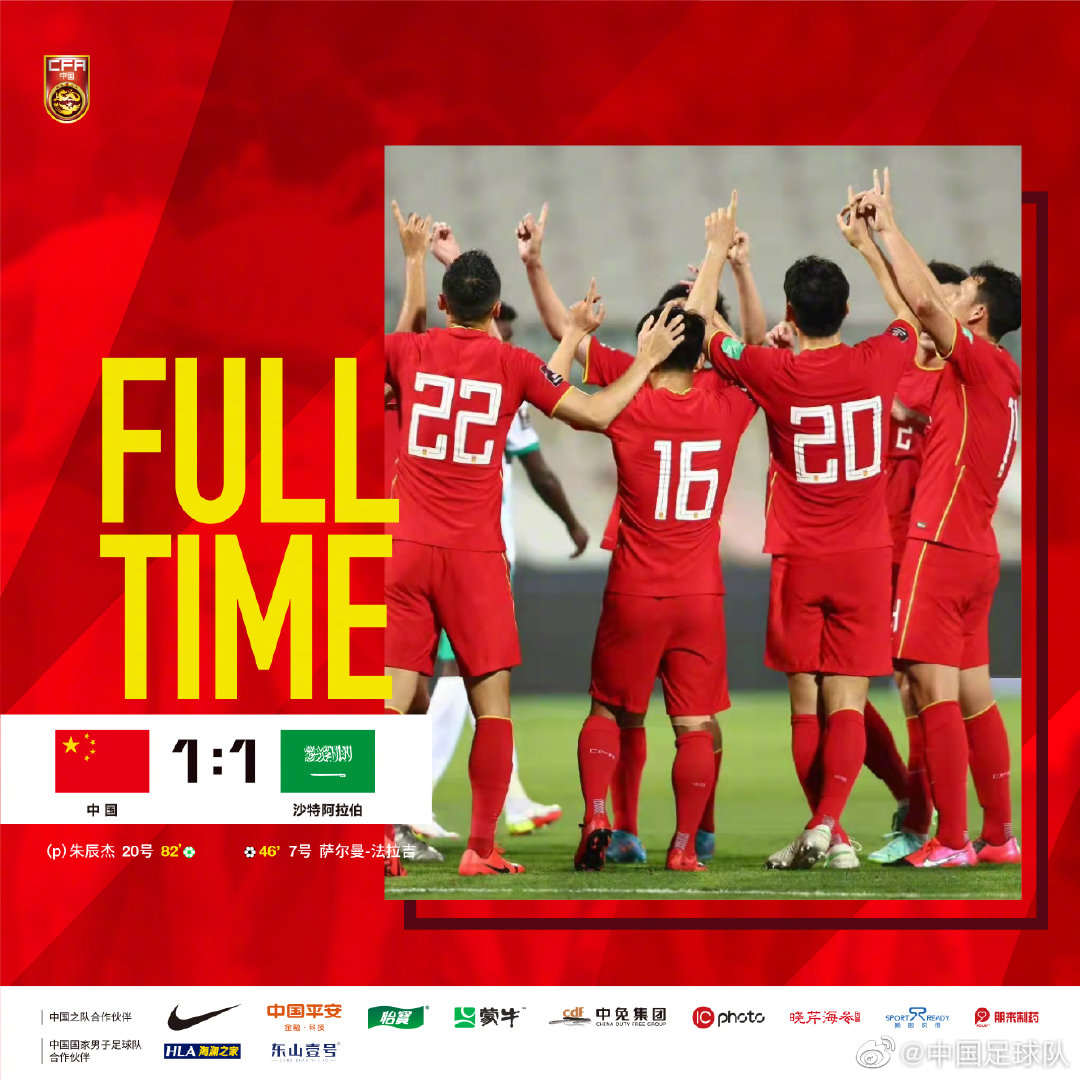 在刚刚结束的2022国际足联卡塔尔世界杯预选赛亚洲区最终阶段(12强赛)B组第9轮比赛中,中国队1:1战平沙特阿拉伯队。朱辰杰攻入个人国家队首球,进球后,队员们围在一起向“3·21”东航MU5735航班坠机事故表示悼念,同时也哀悼24日因病去世的中国足球名宿陈成达。此外,高天意下半时替补登场,完成个人国家队首秀。