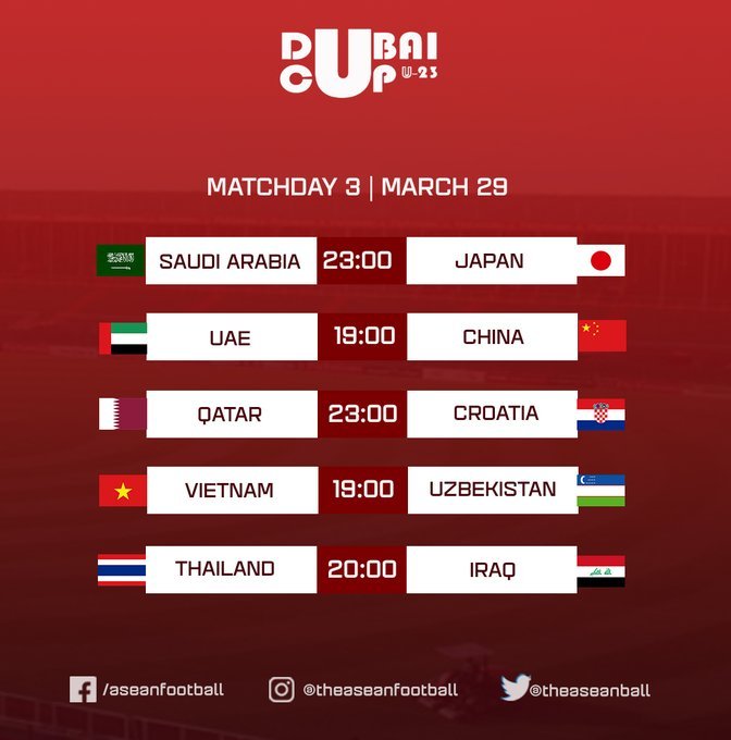 2022迪拜杯第三轮赛程公布,前两战1胜1负的中国U23国家队将与东道主阿联酋U23争夺季军。