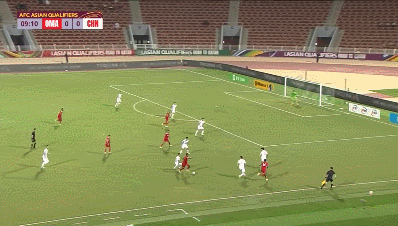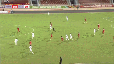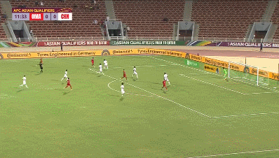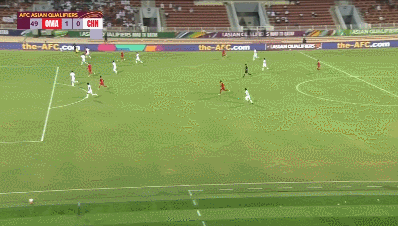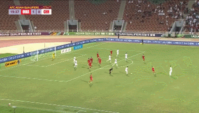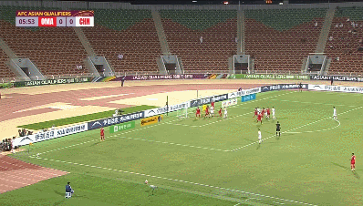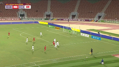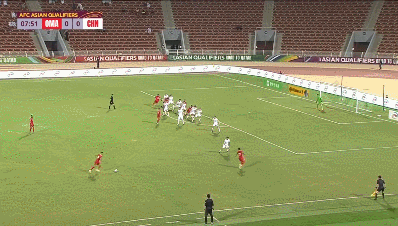 下半时比赛刚开始阿曼队一脚冷射考验了颜骏凌的注意力。