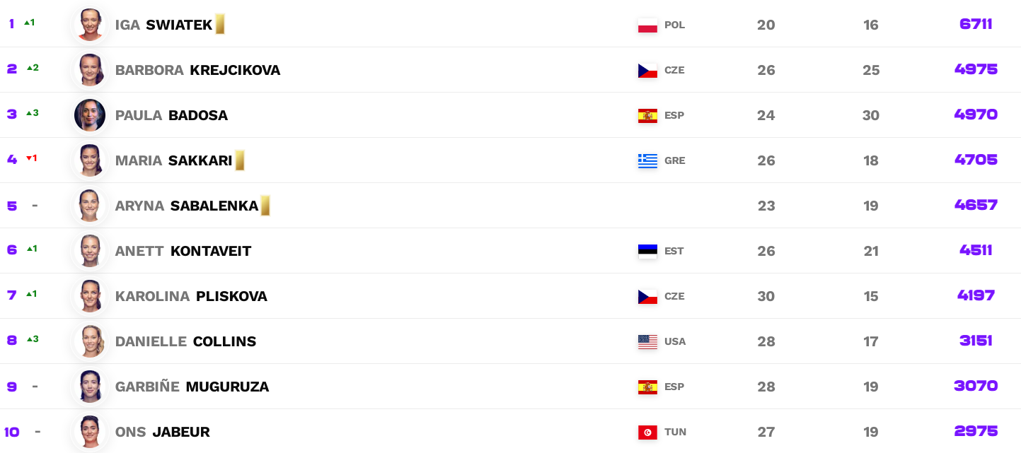 巴蒂在印第安维尔斯赛期间突然宣布退役,斯瓦泰克起初并不能确定自己将成为新科世界第一,不过波兰姑娘在过去一个月内连夺三项WTA1000系列赛冠军,并成为历史上第五位夺得阳光双冠的球员,依靠惊人的统治力将世界第一宝座收入囊中。