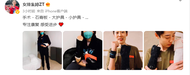 导语:朱婷微博发文亲证进行手术 现已进入康复阶段