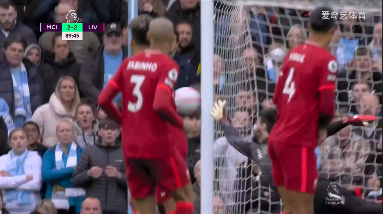 比赛的最后阶段,曼城依旧没有放弃对于进球的渴望。在一次定位球机会中,马赫雷斯主罚的定位球绕过了阿利松的手掌击中门柱外侧后出界。曼城与最后的进球机会再次失之交臂。足球场上门柱的宽度与门线相同,不超过12厘米,也就是说比赛最后的结果再一次被这短短的几厘米所改变了。